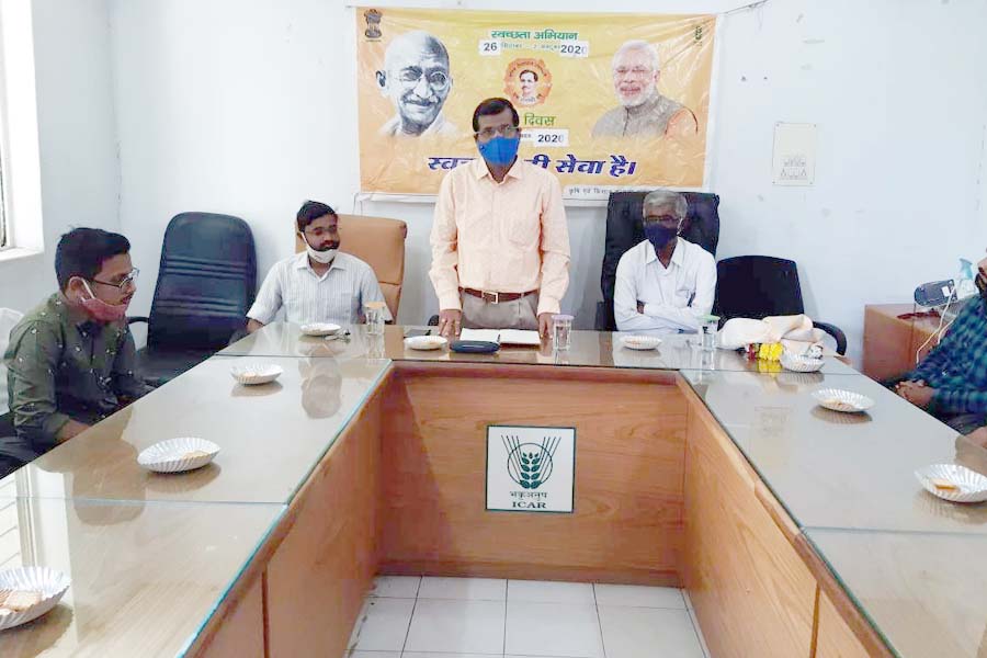 The ICAR-Indian Institute Soil and Water Conservation, Research Centre, Ballari Celebrated of Mahatma Gandhi Jayanthi at ICAR-IISWC, Research Centre, Ballari. The program is graced by Dr. Sidharam Mulaje, Head, Department of Sociology, Veerasiva College, Ballari and program is preceded by Dr. S. L. Patil, Head, RC, Ballari. The Chief Guest delivered a lecture on “Mahatma Gandhi: Philosophy and Thoughts and ideologies of Lal Bahadhur Shatriji”. He throws lights on the life of two great leaders of the nation and sensitized all the staff with the thoughts and ideologies of the Mahatma Gandhi and Lal Bahadhur Shastriji. The program was coordinated by Mr. Ravi K.N, Scientist (Agril. Extension) and Dr. Ravi Dupdal, Scientist, (Agricultural Economics).All the staff members in main office and farm section were actively attended the occasion.