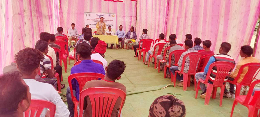 ICAR-IISWC, RC, Koraput organized training cum distribution programme on Promotion of high value vegetable crops by using jholakundi water under RKVY project (Assessment of performance of traditional water harvesting structure Jhola kundi in enhancing socio-economic status of tribals in Koraput district, Odisha) at village Chandalguda, block Dasmantpur, district Koraput on 13.12.2023. Initiating the training programme, Sh. Rishi Kumar, Watershed department welcome one and all present in the programme and briefed in details about the purpose of this training programme. Speaking on this occasion, Dr. Ch. Jyotiprava Dash, PI of the project briefed in details about technical aspects Jhola Kundi and urged the farmers to adopt the technology for their income generation and betterment of life. Dr. J. Lenka, Sci (Fruit Sci) explained about the high value vegetable crops and their cultivation and for higher productivity of crop. Also briefed on vermicomposting unit and preparation of vermicompost, dosage and application procedure of vermicompost, FYM and along with chemical fertilizer use in vegetable crops. Village head/Sarpanch, Chandalguda explained on different government schemes related to water use and safe use of water and fertilizers for betterment of future. A total of 52 farmers including farm women from Chandalguda, block Dasmantpur, Odisha participated in this training programme. During interaction session farmers query were clarified by scientists and technical officers of the research centre. The programme was coordinated by Dr. Ch. J Dash, and Dr. J Lenka.