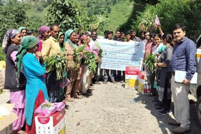 The message of Dr. M. Madhu, Director, IISWC, Dehradun on resource conservation and sustainability was conveyed to the participants, during the program. Crop and soil healthcare inputs including spraying machine, and soil fertilizers besides clumps of Napier grass and sweet potato for improved fodder availability and crop production were distributed to about 70 beneficiary farmers of the 4 hamlets in Kalsi Block.