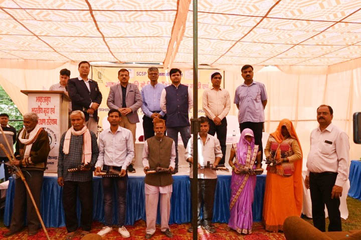 ICAR-Indian Institute of soil and water conservation, Research Centre, Agra organized a Kisan gosthi cum input distribution program under SCSP scheme on February 24, 2023. The main purpose of the program was to create awareness among the farmers about SCSP activities and distribution of the already purchased items to the selected farmers under the SCSP scheme. The program was started with the welcome address by Dr. K. K. Sharma, Pr. Scientist & Head, ICAR-IISWC, Research Centre Agra. The program was chaired by Prof. N. K. Sharma, Dean, Baba Saheb Dr. Bhim Rao Ambedkar College of Agricultural Engineering & Technology, Etawah, as a Chief Guest. The special lectures were delivered by the invited speakers Dr. Manish Singh, Head KVK, Awagarh, Dr. Rajendra Singh, Head KVK, Bichpuri, Agra, and Sh. P.K. Mishra, Deputy Director Agriculture, Agra (U.P.). More than 150 farmers from selected SCSP villages of Andaunka pura and Mudhera, district Agra, participated in the program. During this program, 20 sewing machines, 20 power sprayers, 50 seed storage bins, and 100 framing tool kits were distributed to the selected scheduled cast farmers. The program ended with the chief guest's address as well as concluding remarks by prof. N.K. Shrama and a formal vote of thanks by Dr. R.K. Dubey, Pr. Scientist. The program was coordinated by Dr. R. B. Meena, Sr. Scientist & organizing chairman of the event.