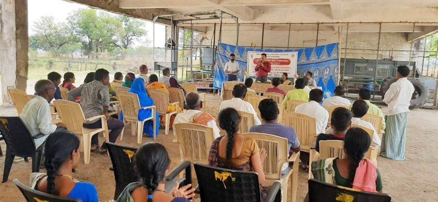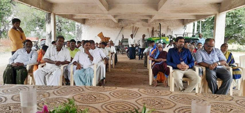 Dr. M. Prabhavathi, Sr. Sci (Soils) and Head of Centre addressed during the occasion, briefed the Centre’s achievements and explained about importance of soil, soil health card and adoption of natural faming for sustainable soil health and productivity. Dr. B.S.Naik, Sr. Scientist (SWCE) emphasized on soil and water conservation, micro irrigation, per drop more crop, growing of less water requiring crops in water scarcity and climate changing scenario. Sh. Ravi K.N, Scientist (Agri. Extension) expressed about the proper scientific cropping practices to be adopted by farmers in the region. Sh. B.N.Seshadri, STO, explained the need of more farmers’ participation to strengthen agriculture in the region. Women participant farmers together sang a local folk song based on difficulties faced by a farmer. The programme was co-ordinated by Dr. B.S Naik, Sh. Ravi K.N, Sh. Gourav Bhati, T-1 and assisted by Sh. Abhishek Singh, T-1. At the end, formal vote of thanks was proposed by Sh. Ravi K.N, Scientist.