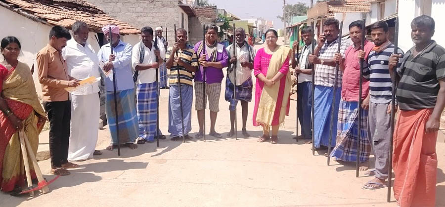 ICAR – IISWC, RC, Udhagamandalam organized distribution of farm tools to farmers and agriculture labourers at Bendarawadi Village of Gundlupet taluk, Chamarajanagar district of Karnataka state under SCSP on 22-02-2023. Around 40 beneficiaries participated in the programme. The distribution of farm tools like spade, pickaxe and crowbar for timely and useful agricultural operations was made by Dr. H. C. Hombegowda, Senior Scientist and he also spoke about the need for soil and water conservation. The Programme was organized and coordinated by Dr. S. M. Vanitha, Senior Scientist, IISWC, RC, Udhagamandalam.