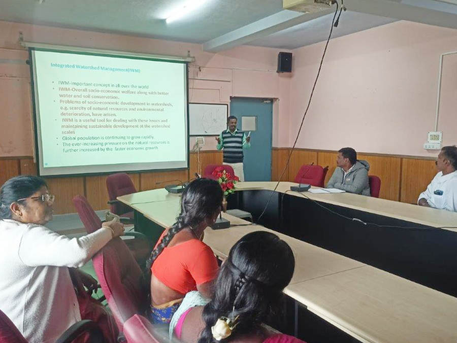 Exposure visit cum training on Watershed management programmes to the committee members and farmers from villages of Pullambadi & Lalgudi blocks of Trichy District brought by Dalmia Bharat Foundation(NGO) was conducted on 31.01.2023 which was sponsored by NABARD by the research centre Ooty. Totally 28 farmers(18 Women and 10 Men) and 2 NGO officials participated in the programme. Dr. P Sundrambal Principal Scientist and Acting Head & Er.A.Murugesan Tech. Officer Coordinated this programme.