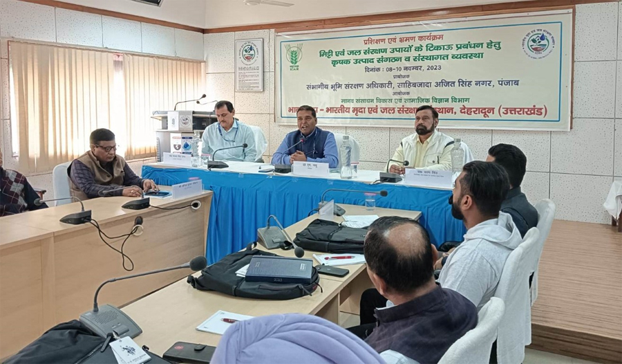 A three days training programme on “Sustainable Management of Soil and Water Conservation Interventions through FPO's and Institutional Arrangement” was organised during 8-10 November, 2023 at ICAR-IISWC, Dehradun. Twenty five (25) farmers of SAS Nagar District of Punjab State participated in the programme. Process of the organisation of FPO's and its functional aspects its sustainability, institutional arrangements and water user association, natural and organic farming interventions and importance of vegetative measures for soil and water conservation in changing climate scenario will be included in the course content of the training programme.