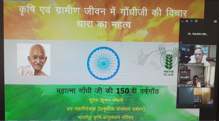 The online workshop on “Gandhian Philosophy” to commemorate the 150th Birth Anniversary of Mahatma Gandhi Ji was organized by Indian Council of Agricultural Research (ICAR) today on 25.09.2020. Dr. S. K. Chaudhary, DDG (NRM), ICAR was the guest speaker on the occasion. At the outset, Dr. S. P. Kimothi, ADG (Coordination), ICAR gave a brief description about the workshop and importance of Gandhian Philosophy in the present scenario. He welcomed all the participants and urged to adopt the Gandhian principles in their day to day life. ‘To forget how to dig the earth and tend the soil is to forget ourselves’ this statement from Gandhi Ji is sufficient enough to understand the basic philosophy behind farming. The guest speaker Dr. S. K. Chaudhary, DDG (NRM), ICAR delivered lecture on the topic “Krishi evam Gramin jivan me Gandhi Ji ki vichar dhara ka mahtva”. He told that Gandhian principles are comprehensive to change the behavior of the people to lead a healthy and prosperous life without competing with others.