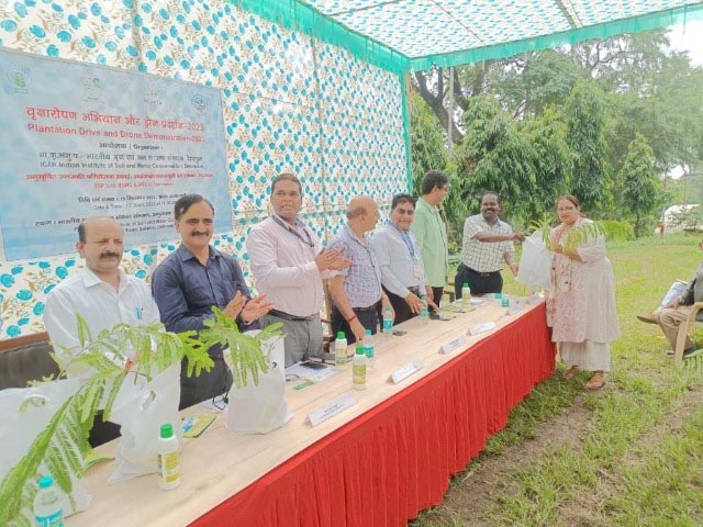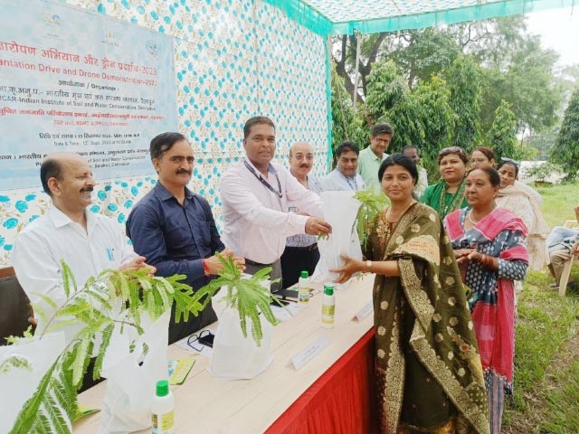 A program of “Plantation Drive and Agri Drone Demonstration” was organized at the Research Farm ICAR-Indian Institute of Soil and Water Conservation (ICAR-IISWC), Selakui, Dehradun and IFFCO, Dehradun on 13th September 2023. About 200 people participated including progressive farmers, scientists, technical officers, and other staff attended the program. The program was organised under the provision of the TSP program of IISWC.