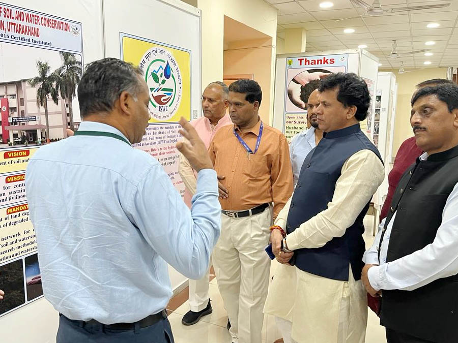 Shri Kailash Choudhary Ji, Union Minister of State for Agriculture and Farmers Welfare, Government of India visited ICAR-IISWC, Dehradun on May 14, 2023. Dr M. Madhu, Director of the Institute and Head of Departments Dr Charan Singh, Dr Dharamveer Singh and Chief Administrative Officer (Senior Grade) Shri. S.K. Gajmoti and other officials of the Institute welcomed the Honorable Minister. Honorable Union Minister of State for Agriculture and Farmers Welfare visited the Museum of the Institute, in which the details of the activities of the Institute were briefed by Dr Dharamveer Singh, Head, HRD&SS. The Director of the Institute Dr M. Madhu and other dignitaries were present on the occasion. The Hon’ble Minister took keen interest in the activities of the institute and appreciated the research and contribution made by the institute in the field of soil and water conservation.